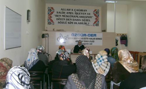 Özgür-Der Akhisar Temsilciliğince düzenlenen bayanlara yönelik "Kur'an'a göre kavramlar" üst başlıklı seminerler dizisinin altıncısı olan 'Adalet ve zulüm kavramları' konulu seminer, Özgür-Der Akhisar Temsilciliğinden Esra Füzün'ün sunumuyla gerçekleştirildi.