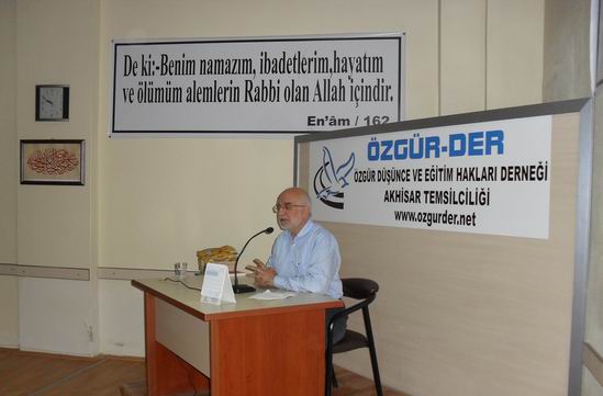 Akhisar Özgür-der temsilciliğinde düzenlenen seminer programlarının konuğu Haksöz Dergisi yazarlarından Hamza Türkmen oldu. Türkmen ''Sünnet-Hadis ayırımı ve hadislerin değeri meselesi'' başlıklı seminer programında özetle şunları anlattı: