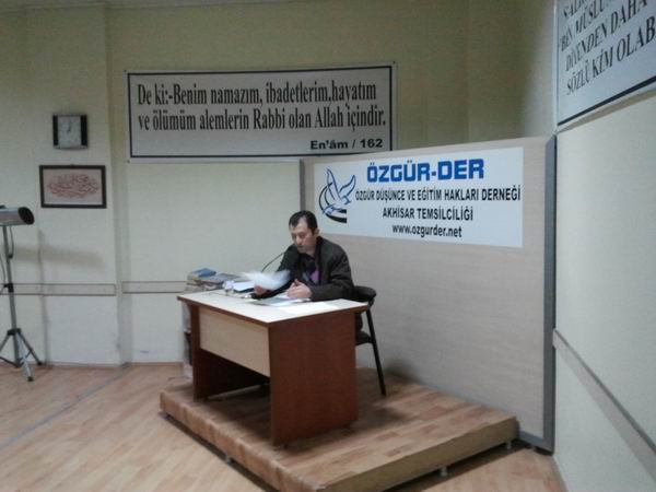 Akhisar Özgür-Der temsilciliğinde düzenlenen seminer programlarının onikincisi Serkan Dursun'un sunduğu 'Sünniliğin Oluşumu' başlıklı konuyla devam etti.