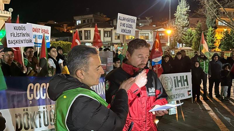 Tekbirler ve sloganlarla başlayan programın basın açıklamasını okuyan Merzifon İHH Başkanı Ferdi Taşdemir, Gazze’de yaşananlar tüm vicdan sahiplerini huzursuz ederken Müslümanlar olarak yaşanan bu zulme karşı kayıtsız kalmanın mümkün olmadığını vurgulayarak geçmişte Çanakkale’de, bugün Gazze’de İslam uğruna canlarını ortaya koyan, zalimlere karşı izzetle direnen şehitlerin emanetlerine sahip çıkılması gerektiğini belirtti.