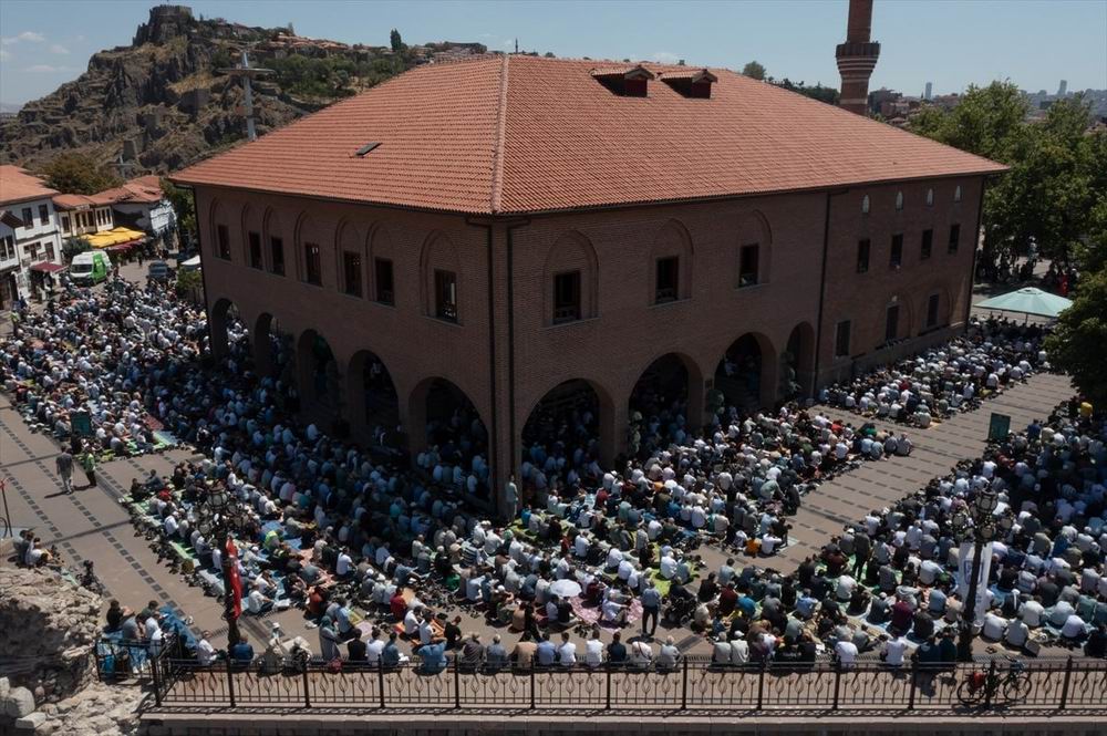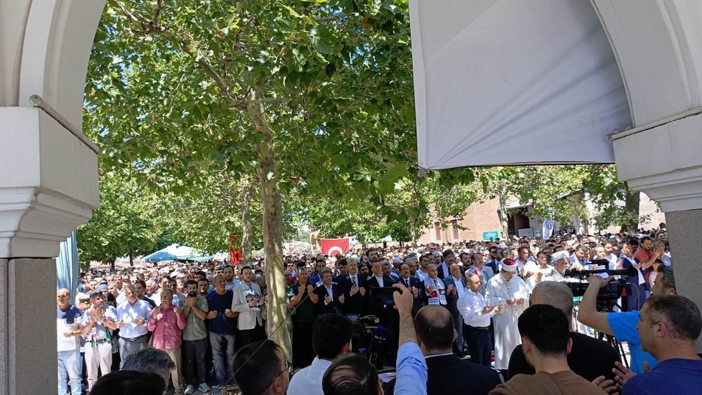 Ankara’da Hacı Bayram Veli Camisi'nde cuma namazının ardından binlerce kişi şehit İsmail Heniyye için gıyabi cenaze namazında saf tuttu.