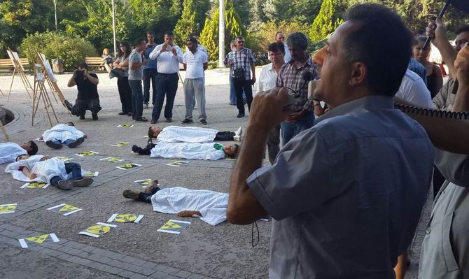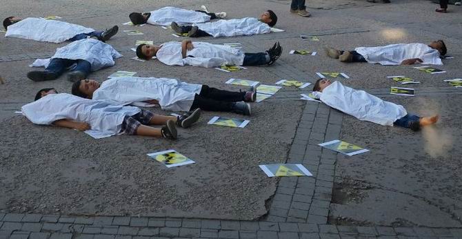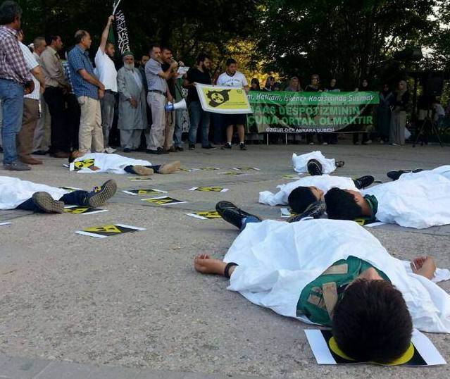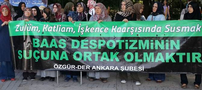 Özgür-Der Ankara Şubesi tarafından yapılan çağrıyla İpekçi Parkı’nda toplanan Ankaralı Müslümanlar Suriye’de Esed diktatörlüğünün gerçekleştirdiği katliamları protesto etti. Suriyeli Muhacirlerle birlikte yapılan basın açıklamasında katliamdan görüntüleri içeren resimlerde sergilendi. Basın açıklamasında Suriyeli çocuklar da kefenler giyerek katliamı canlandırdılar. Çocukların gösterisi vatandaşlarında da ilgi gördü.