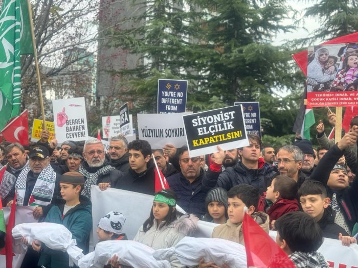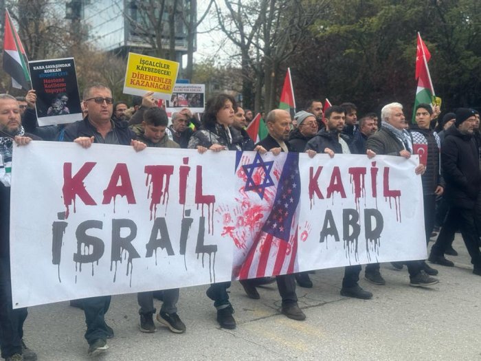 Ankara’da yüzerce kişi ABD destekli Siyonist katliamları telin etmek için Tuğba Altınok Camii’nden ABD Büyükelçiliğine yürüyüş gerçekleştirdi.