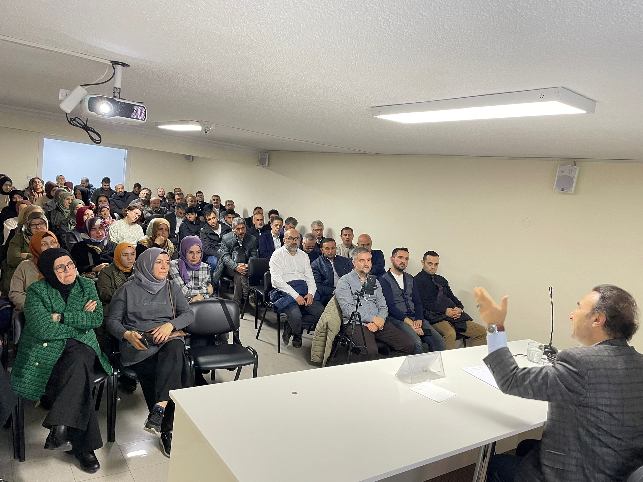 Dernek salonunda düzenlenen programda, Düzgün, dinleyicileri selamlayarak konuşmasına başladı.