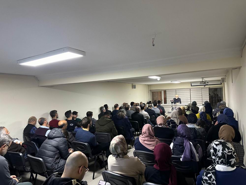 Kaya, dernek salonunda düzenlenen programda, dinleyicileri selamlayarak konuşmasına başladı.