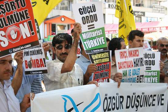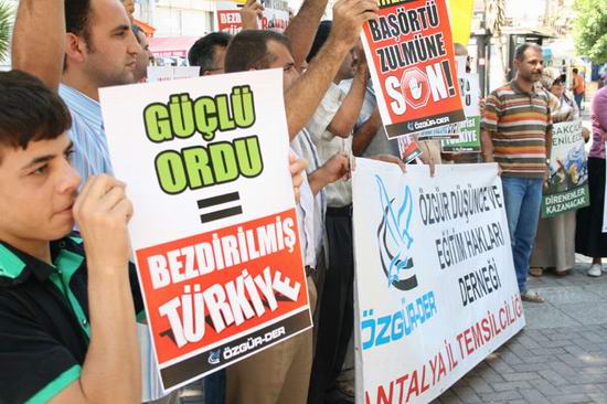 Özgür-Der Antalya Temsilciliği üye ve dostları bugün Antalya kapalı yolda başörtüsüne özgürlük eylemi gerçekleştirdi. Basın açıklamasını platform adına Rüştü Hacıoğlu okudu.