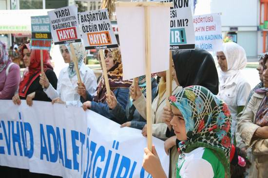 Bizler bu çirkin durumu teşhir etmeyi sürdürüyoruz. Başörtüsü karşısında çıldırmışçasına tepkiler veren, insanlıktan çıkmış bu güruhun yol açtığı skandallara, dayatmalara göz yummuyoruz. Başörtüsü özelinde saldırıya maruz kalanın basit bir giysi, bir kumaş olmayıp doğrudan Rabbimizin bizlere lutfettiği İslami kimliğimiz olduğunu biliyoruz. Ve bu bilinçle, kararlılıkla ve azimle İslami kimliğimize yöneltilen saldırılara, baskılara, hakaretlere karşı direnmeyi sürdüreceğimizi haykırıyoruz.