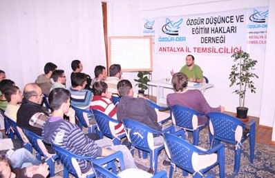 Özgür-Der Antalya Temsilciliği tarafından Cuma akşamları düzenlenen derslerde bu hafta Mustafa Pektaş tarafından "Dua" konusu sunuldu.