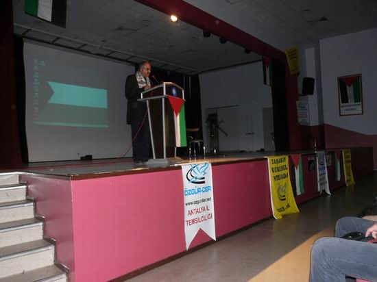 Özgür-Der Antalya Temsilcisi Ahmet Balta'nın açılış konuşmasından sonra, İHH adına Mehmet Yıldırım ve ADAP Platformu adına da Alpaslan Arslan birer konuşma yaptılar.
