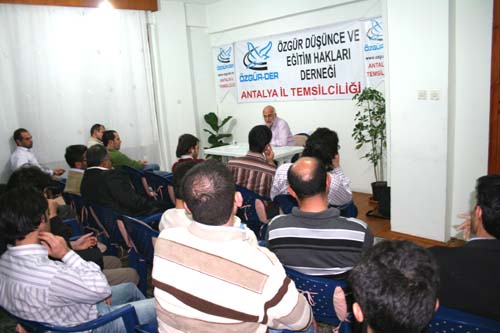 Özgür-Der Antalya Temsilciliğinde Cuma Derslerinin bu haftaki konuğu Haksöz Dergisi yazarlarından Hamza Türkmen'di.