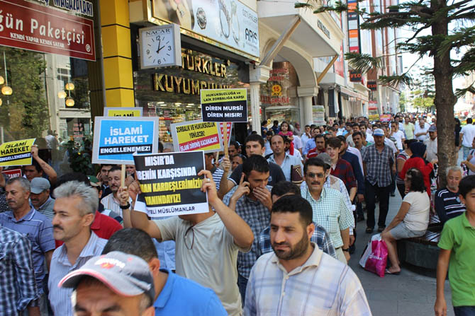 Antalya Muratpaşa Camisinde toplanan gurup Cuma namazını müteakip Mısır’da yapılan darbeciler tarafından öldürülen Müslümanlar için gıyabi cenaze namazı kılındı. Cenaze namazından sonra kalabalık gurup ellerindeki döviz ve pankartlarla Kapalı Yol’da basın açıklamasının yapılacağı meydana sloganlar eşliğinde geldiler. Basın açıklaması, Mısır Halkı ile Dayanışma platformu adına Barış Hoyraz tarafından okundu. Basın açıklamasında Antalyalılar olarak dünyanın her neresinde olursa olsun darbecilerin karşısında oldukları, Mursi’ye ve Mısır halkını destekledikleri vurgusu ön plandaydı.