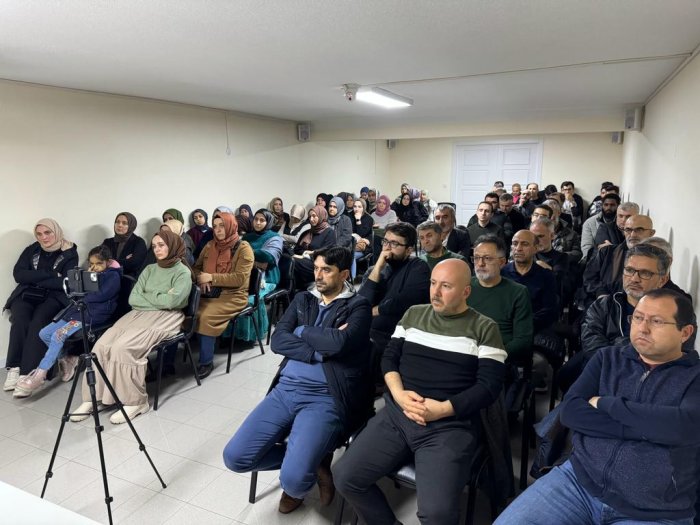 Dernek salonunda düzenlenen programda, Aydın Ünal, dinleyicileri selamlayarak konuşmasına başladı.