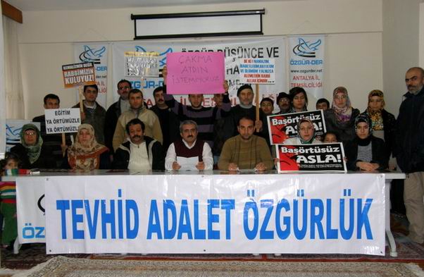 Antalya'daki Özgür-Der Temsilciliği, başörtüsü yasağından darbeci zihniyetin tasfiyesine; TEKEL işçilerinin mağduriyetinden Mustafa Akaydın'ın sözlerine kadar birçok konu hakkında bir açıklama yaptı.