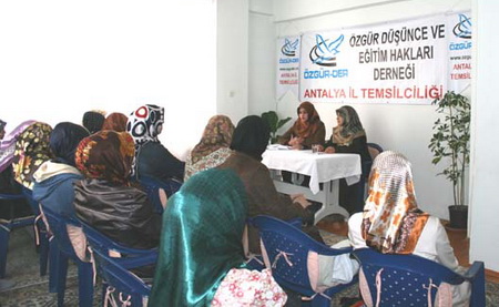Özgür-Der Antalya Temsilciliği bayanlara yönelik Pazar eğitim seminerleri devam ediyor. Bu hafta "Ordu ve Siyaset" ile "Batılılaşma" konuları ele alındı.