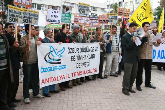 Antalya Özgür-Der Temsilciliği 3 Ocak 2010 Pazar günü hak ihlalleriyle ilgili bir basın açıklaması yaptı. 13:30’da Kapalı Yol Havuz yanında gerçekleştirilen basın açıklaması Vedat Çetinkaya tarafından okundu.
