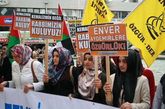 Enver Aydemir'in annesi ve eşi de başörtülüdür. Allah'ın emri gereği başörtüsünü takan annelerine, kardeşlerine, eşlerine kamusal alan yasaklanan gençler, hangi hakla kamu hizmetine zorunlu tutulabilinir. Başörtüsü yasağı tüm acımasızlığı ile devam ediyor, silahlı bürokrasi gerekçe gösterilerek bu yasak görmezden gelinemez. Başörtüsünden dolayı Müslüman bayanların kamusal alanlarda ayrımcılığa tabi tutulması hukuk dışıdır. Halkın bir kısmının kamusal alanda yok sayılması vatandaşlık hukukunun ve insan haklarının açıkca ihlalidir. Eşit öğrenim ve çalışma hakkını engelleyen tüm ilkel yasaklar ortadan kalkmadan hukuk devletinden asla bahsedilemez.