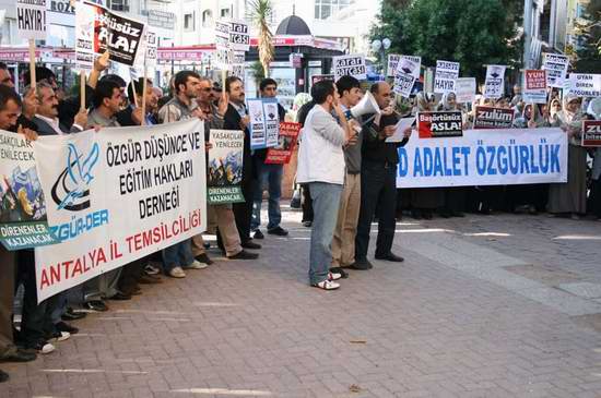 Özgür-Der Antalya Temsilciliği Kurban Bayramının 3. günü 14:00’da kapalı yol havuz yanında Danıştay’ın kararını protesto eden bir basın açıklaması yaptı.