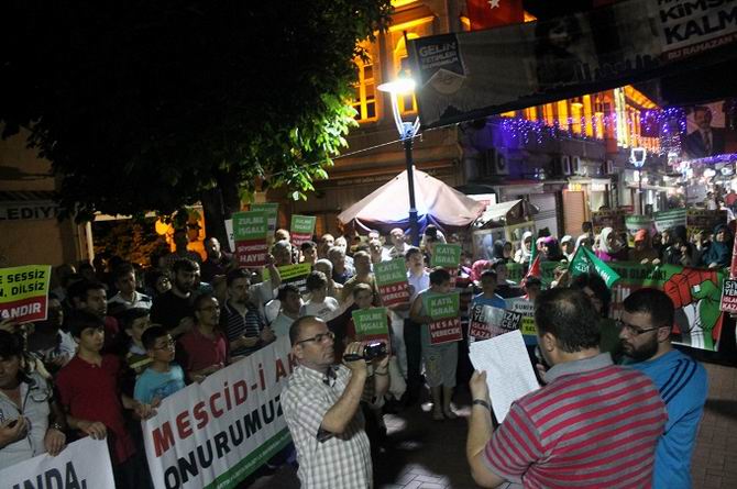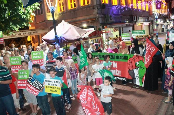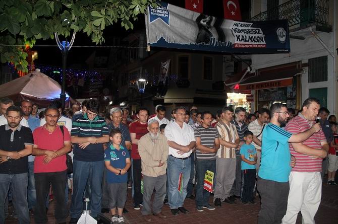 Teravih namazını müteakip Bartın Arap Camii önünde, işgalci Siyonist çetenin hain saldırılarıyla şehid olan Filistinli kardeşlerimiz için gıyabi cenaze namazı kılındı.