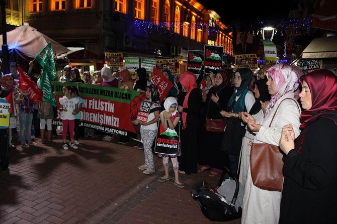 Basın açıklamasıyla birlikte, “Gazze’ye Kudüs’e direnişe bin selam!, Yaşasın küresel intifada!, Katil İsrail, Filistin’den Defol, Filistin Halkı yalnız değildir, Yaşasın Filistin Direnişimiz, Zulme, işgale, siyonizme hayır!” sloganları atıldı.