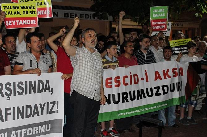 Namazı kıldıran Kemal Kök mazlum kardeşlerimiz ve ümmet coğrafyasının dirilişi için dua yaptı. Ardından konuyla ilgili bir basın açıklaması yapıldı. Bartınlıların aileleriyle iştirak ettikleri basın açıklaması ve dua etkinliğine yoğun bir katılım oldu. İşgalci Siyonist rejimin yaptığı saldırıların anlatıldığı ve telin edildiği basın açıklamasının metnini, İbrahim Kurtuluş okudu.