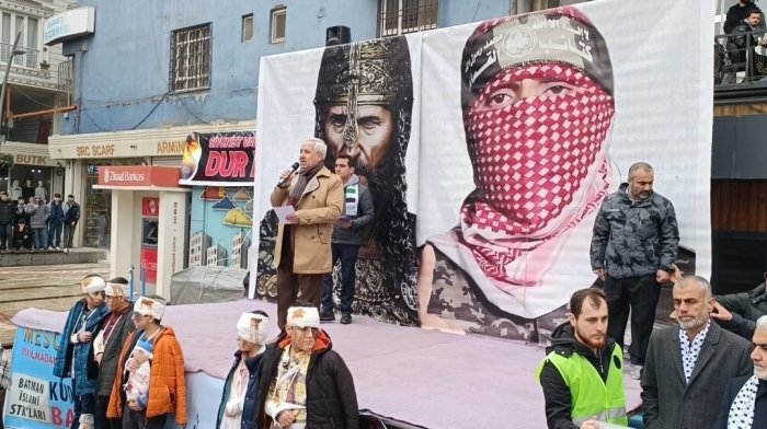 Yürüyüş esnasında; ''Kahrolsun israil!", "Katil Amerika Ortadoğu'dan Defol!", "Zalimler İçin Yaşasın Cehennem!", "Batman'dan Hamas'a Direnişe Bin Selam!" sloganları atıldı.