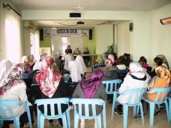Zeynep Ocakhanoğlu kısaca; Hz. Hacer'in tarihsel sürecini değerlendirerek, İsmail'in doğumuyla, Hz. İbrahim'in onları bir çöle bırakarak ayrılması ve bu anda Hacer'in "eğer böyle yapmanı rabbin emrediyorsa O bize yeter" diyerek teslimiyetine ilk adım atmasına değinerek çöl de kaldıkları süre zarfın da yaşadığı zorluklara sıkıntı duymaksızın taşıması karşılığında kendisine sunulan nimetleri vurgulayarak konuya açıklık getirmeye çalıştı. İkinci konuşmacı Sema Yavuz ise; Cariye iken bir peygamber eşi olan ve bunu hakkıyla yerine getiren Hz. Hacer'in ıssız bir çöl de bir bebekle tek başına ancak Allah'a olan imanı ve teslimiyetiyle başardığını dile getirerek bizlerin hayat karşında kalbi değil daha çok akli, mantıksal yaklaşımlarımızdaki sıkıntılara değindi. Hz. Hacer'in mezarının Kabe sınırları içerisinde olmasının onun gerçekten "Allah'tan razı, Allah'ın da ondan razı olmasından" kaynaklandığını ve örnekliklerinin hayatımıza yansıması duasıyla bitirdi. Oturum başkanı Semra Doğru konuyu toparlayarak günümüz insanı ve Müslümanlar açısından "teslimiyet" kavramına olan yanlış bakış açısını sorguladı. Sıcak gündemlerimiz olan "başörtüsü, katsayı" vb. konularda samimiyetimizi ve duyarlılığımızı tekrar gözden geçirmenin gerekliliğine dikkat çekerek oturumu bitirdi.