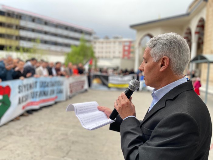 Bugün burada bayramın asıl sahiplerinin bayramlarını tebrik etmek, Gazze’de kardeşlerimize yapılan zulmü unutmamak, unutturmamak adına toplandık. Gazze’yi gündemimizden düşürmeyelim, bu soykırıma tepkimizi yaptığımız eylemlerle gösterelim. Dualarımızda kardeşlerimizi unutmayalım. Elimizden ne geliyorsa yapalım. Eli kalem tutanlar bu davayı yazsın. Hitabeti güçlü olanlar bu davayı konuşsun. Herkes bir şey yapsın ama sakın sessiz kalmayalım. Çünkü sessizlik öldürüyor.