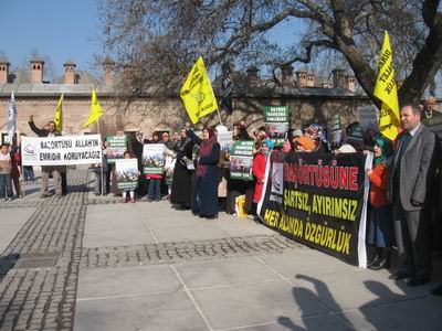 Özgür-Der Bursa şubesi uzun süredir tartışılan ve bu günlerde başörtüsünün özgürlüğü adı altında yürütülen çalışmaların yetersizliğini dile getirmek ve başörtüsü üzerinden dine karşı sert bir tutum sergileyen kesimleri protesto etmek amacıyla basın açıkla