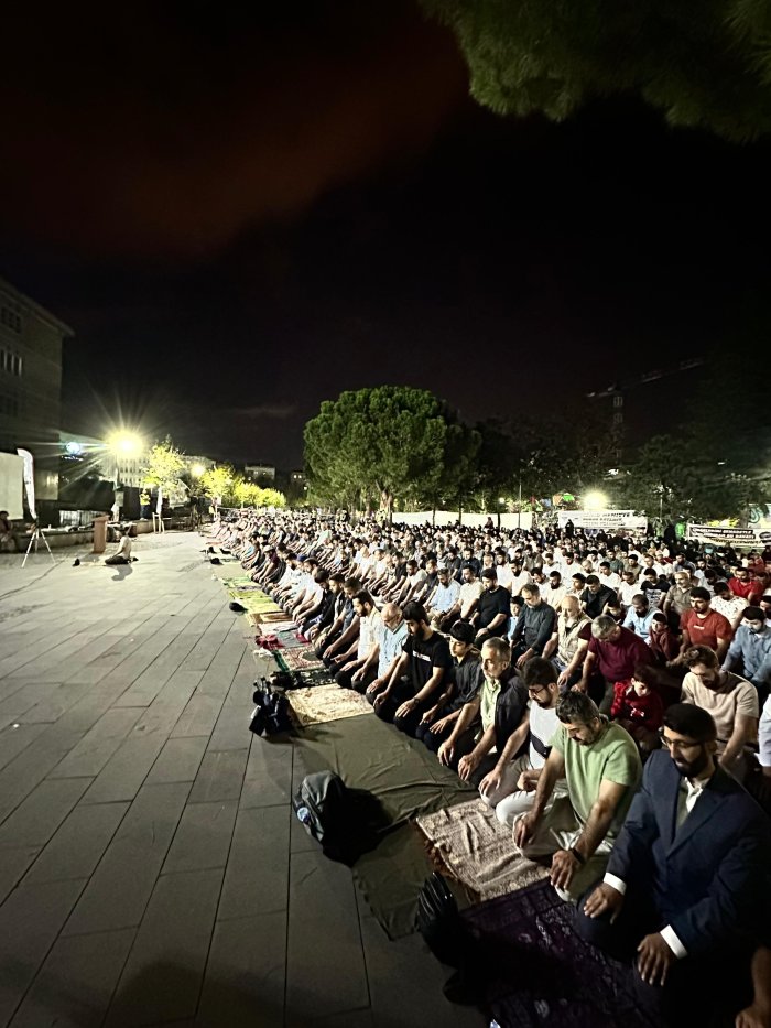 Bursa’da Gazze Dayanışma Platformu’nun çağrısıyla Yıldırım Belediyesi bayrak alanında bir araya gelen Müslümanlar Gazze için kunut duası programı gerçekleştirdi.