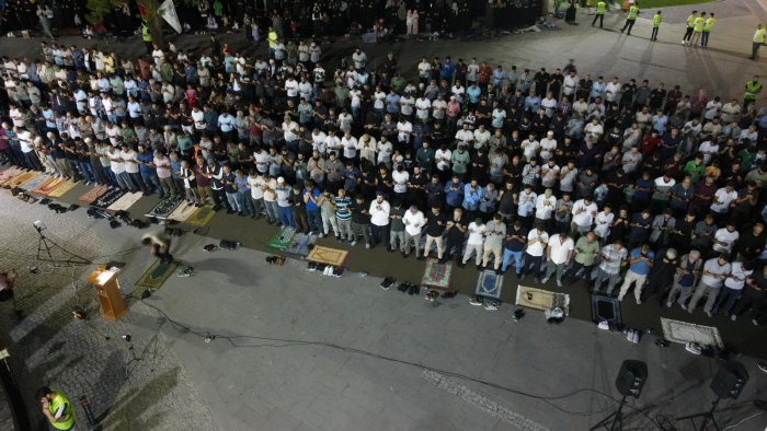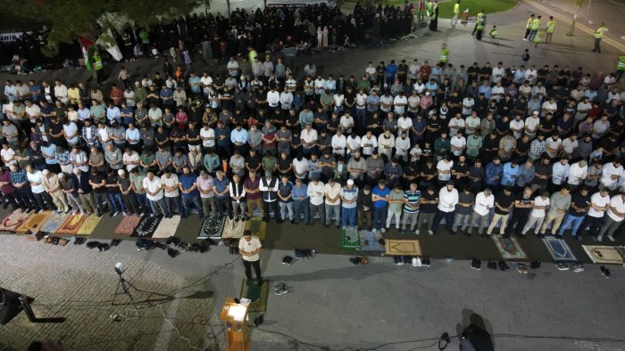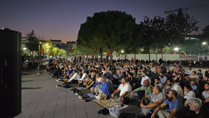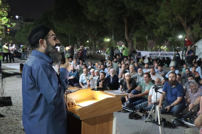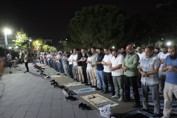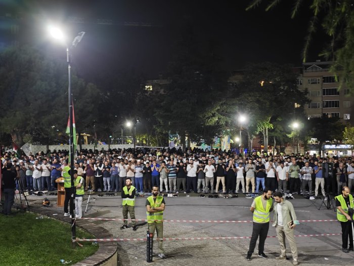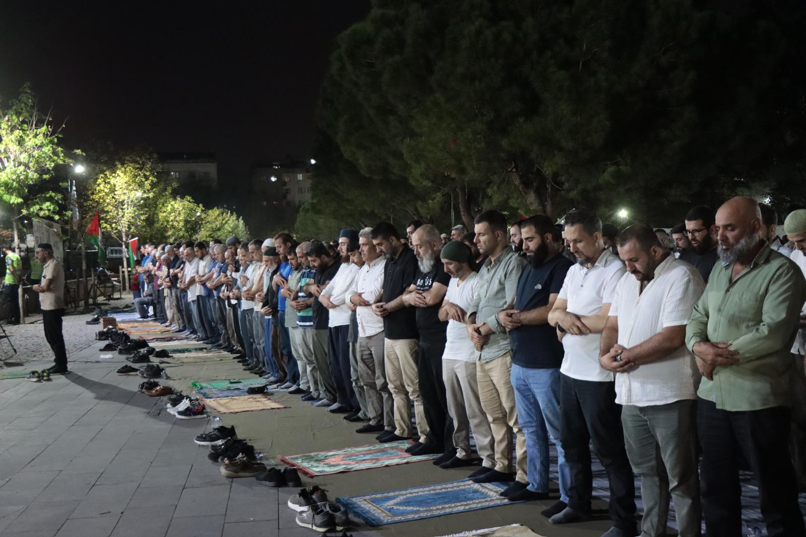 Bursa’da Gazze ile Dayanışma Platformunun çağrısıyla bir araya gelen Müslümanlar, Yıldırım bayrak alanında kunut programı gerçekleştirdi.