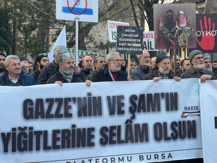 Bursa’da Gazze ile dayanışma platformunun çağrısıyla bir araya gelen Müslümanlar, Gazze'deki zaferi kutladı.