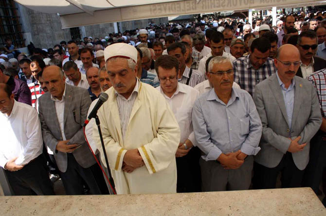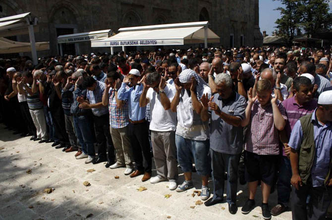 Mısır’da darbeci yönetimin katlettiği Müslümanlar için Ulucamii’de gıyabi cenaze namazı kılındı. Cuma namazı sonrasında Ulucami avlusunda toplanan Müslümanlar Mısır’da darbeci yönetimin katlederek şehit ettiği kardeşleri için gıyabi cenaze namazı kıldılar. Cenaze namazını Bursa İl Müftü Yardımcısı kıldırdı. 70’den fazla kuruluşun ve Bursalı Müslümanların katıldığı cenaze namazından önce Bursa İl Müftü Yardımcısı kısa bir konuşma yaparak son günlerde özellikle Mısır’da yaşanan katliama dikkat çekti. Konuşmasının ardından büyük bir kalabalığa cenaze namazını kıldıran Müftü yardımcısı, namazın ardından dua ederek programı sonlandırdı.