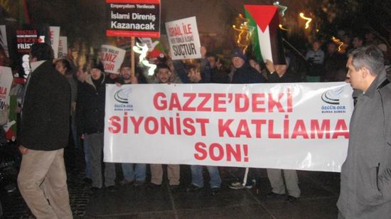 En başta İsrail'e savaşı durdurmasını ve geri çekilmesini söylüyoruz. Gazze ablukasını kaldırması gerektiğini söylüyoruz. Ancak İsrail'e karşı en güzel eylemi bugün Hamas sergilemektedir. Diğer yandan ise başta Türkiye yönetimi olmak üzere İslam ülkeleri yöneticilerine, duyarlı olmalarını ve Allah'ın istediği şekilde hareket ederek İsrail'e karşı net bir tavır almaları gerektiğini söylüyoruz. Ancak günlerdir hiçbir somut adımın atılmadığını da üzüntüyle gözlemlemekteyiz.