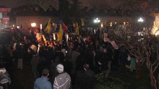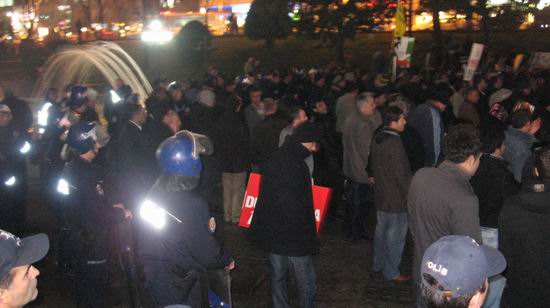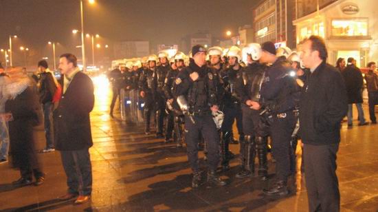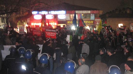 Filistin Gönüllüleri basın açıklamasının bitmesinin ardından küçük gruplar halinde Kent meydanına doğru slogansız ve pankartsız bir şekilde yol aldı ancak daha fazla ekiple Kent meydanında bekleyen Emniyet mensupları grubun sessiz bir şekilde Kent meydanına geldiğini görünce mazeret belirtmeksizin grubun hemen dağılmasını istedi. Gözaltına alınma tehditleri ve fotoğraf çekmekte olan Özgür-Der mensuplarına 'terbiyesiz' gibi çirkin ifadelerle saldıran polis memurları yukarıdan öyle emir geldiğini de sözlerine ekleyerek sebepsiz ve keyfi uygulamalarını sürdürmekte ısrar etti.