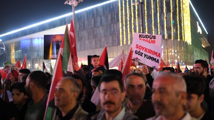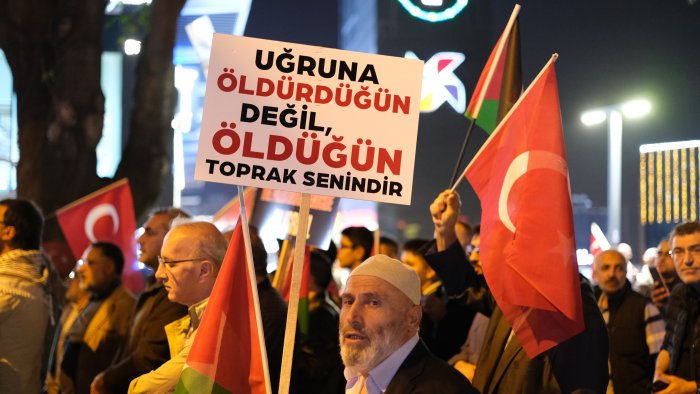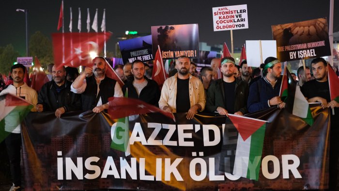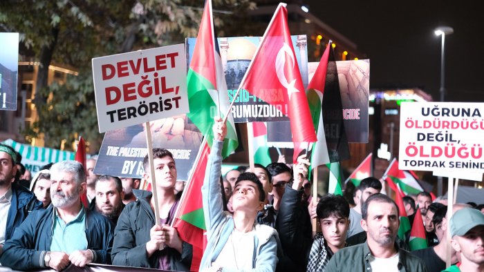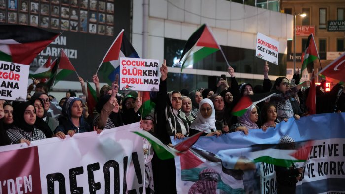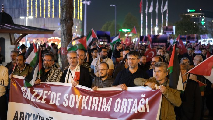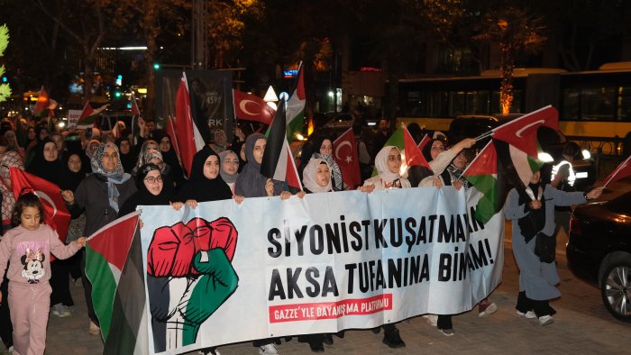Binlerce kişinin toplandığı Kent Meydanı’ndan Şehreküstü Meydanı’na doğru destek ve Siyonist katliamı protesto yürüyüşü yapıldı. Gazze Direnişi ve Mescid’i Aksa ile ilgili birçok döviz ve pankartın taşındığı yürüyüşte sürekli “Katil İsrail Filistin’den Defol”, “Hamas’a Selam Direnişe Devam”, “Müslüman Kardeşine Sahip Çık”, “Bursa’dan Gazze’ye Direnişe Bin Selam”, “Kahrolsun Amerika, Kahrolsun İsrail” gibi sloganlar atıldı.