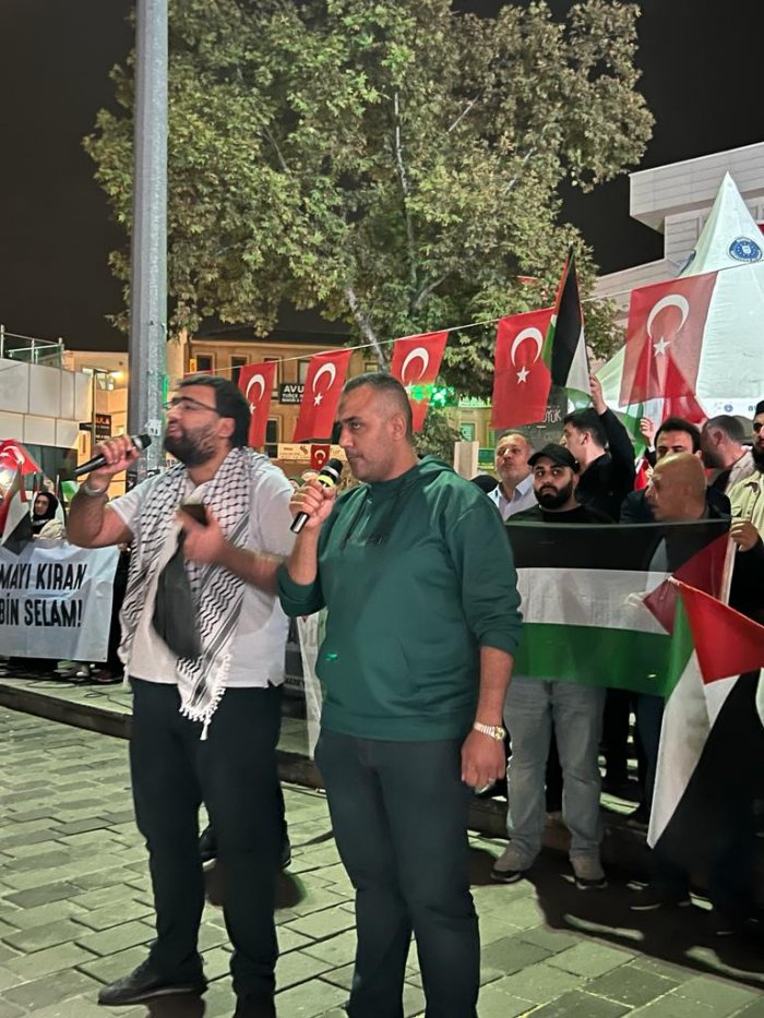 Ardından Bursa Filistin Evi Derneği Başkanı Muhammed Alyazı konuştu. Alyazı konuşmasında; Filistin mücadelesi her zaman ve her daim diri kalacağını, her gün Filistin topraklarında bir mücahit yetiştiğini söyledi. İsrail bugün Filistin’de bizleri, çoluk çocuk demeden yok etmeye çalışıyor, bombalar yağdırarak katliam gerçekleştiriyor. Ama buradan tüm dünyaya seslenerek söylüyorum bizler her gün bir mücahit yetiştiriyoruz ve Allah’ın izniyle galip geleceğiz diyerek konuşmalarına son verdi.