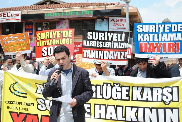 Suriye başta olmak üzere, Ortadoğu'da işlenen katliamlara karşı Türkiye sesiz kalmamalıdır. Suriye devleti ile iyi ilişkiler geliştirme yerine kardeş Suriye halkına yardım çabası içinde olunmalıdır. Stratejik ve ulusal çıkarlar göz önünde tutularak sesiz kalınması kabul edilemez. Akan kan durdurulmalı, siyasi sebepler bahane edilerek tutuklanan muhalif Müslümanlar serbest bırakılmalıdır. Biz Özgür-Der Bursa Şubesi olarak elli yıla yakındır halkın üzerinde zulmünü sürdüren Esad diktası gidene kadar Suriye halkının mücadelesini desteklemeye devam edeceğiz.
