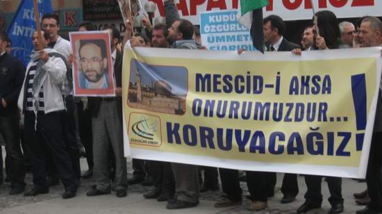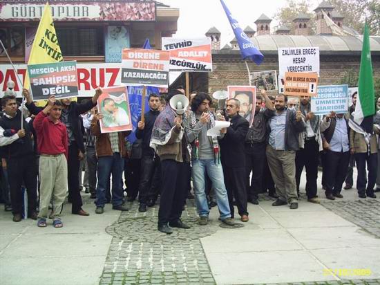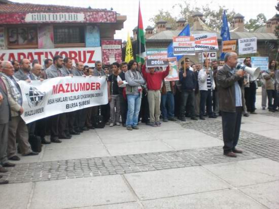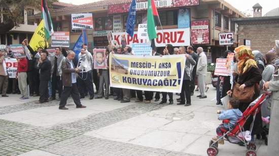 Özgür-Der Bursa şubesinin düzenlemiş olduğu eylem, Mazlum-Der ve çeşitli sivil toplum örgütlerinin katılımıyla gerçekleşti. Bursalı Müslümanlar Filistin'deki son gelişmeler ve Mescid-i Aksa nın siyonistlerin, İsrail polis ve askeri eşliğinde ibadete kapatılmasını, Filistinli Müslümanların ibadet hürriyetlerinin engellenmesini protesto etmek için Orhangazi parkında toplandı..