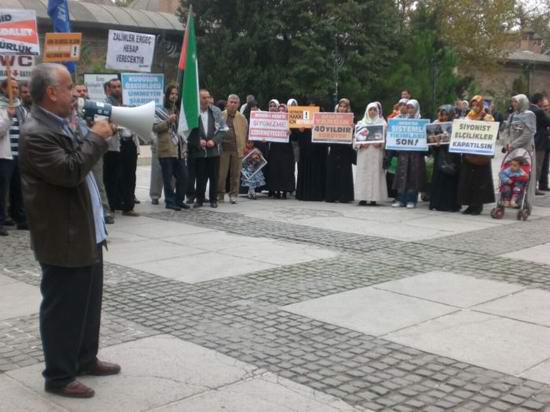 Eylemde toplanan kalabalığa hitap eden Özgür-Der Bursa Şubesi başkanı Aziz AVAR ; Filistin davasının Müslümanlar için ehemmiyetinden bahsederken, 26 Ekim 1995'te şehit edilen Filistin İslami Cihad Hareketi lideri Fethi ŞİKAKİ'nin de Filistin davası için önemi üzerinde durdu. Basın açıklaması sırasında Amerika ve İsrail karşıtı sloganlar atan topluluk daha sonra olaysız bir şekilde dağıldı.