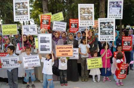 Hiç bir güç Allah'ın emri olan başörtüsünü yasaklayamaz. İnancımızı ve kimliğimizi yasaklamaya kalkan hiçbir kararı kabul etmedik bundan sonra da etmeyeceğiz!