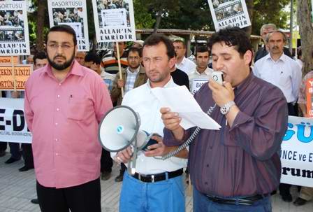 Ayrıca; Basın açıklamasında "Müslüman Zulme Sessiz Kalma", "Zulme Karşı Direneceğiz", "Başörtüye Şartsız, Sınırsız Özgürlük", "İslami Kimlik Yasaklanamaz", "Başörtüsü Onurumuz, Koruyacağız" gibi sloganlar atılarak devam etti.