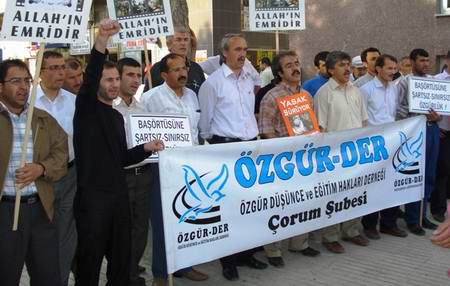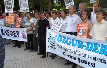 Özgür-Der Çorum Şubesi'nde Başkanı Bülent Gökgöz tarafından okunan basın açıklamasında "Anayasa mahkemesinin vermiş olduğu bu kararla baskının, hukuksuzluğun, keyfiliğinin devam ettiği ve bu kararla bir kez daha İslami değerlerin hedef olduğunu açıkça ortaya koyulduğu" dile getirildi.