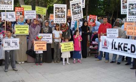 Özgür-Der Çorum Şubesi ve İlke-Der tarafından Çorum Merkez Postane önünde Anayasa Mahkemesinin Başörtüsü Kararı bir basın açıklaması ile protesto edildi.
