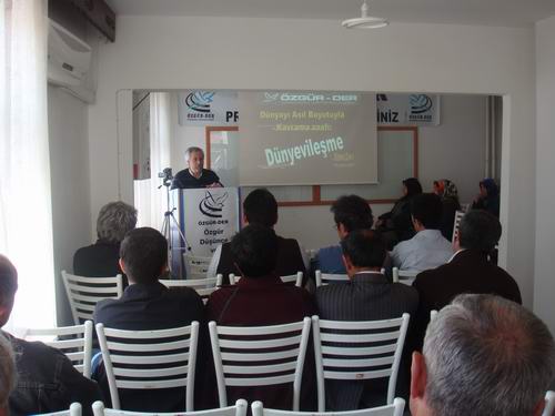 Dünya kavramını açıklayarak ve ahiret hayatını yok sayan veya bu dünyayı bir çile hane olarak gören kimi dünya algılamalarından bahsederek konuşmasına başlayan Yılmaz Çakır, Dünyevileşmenin Zihinsel ve Pratik olarak iki şekilde gerçekleştiğine değindi.