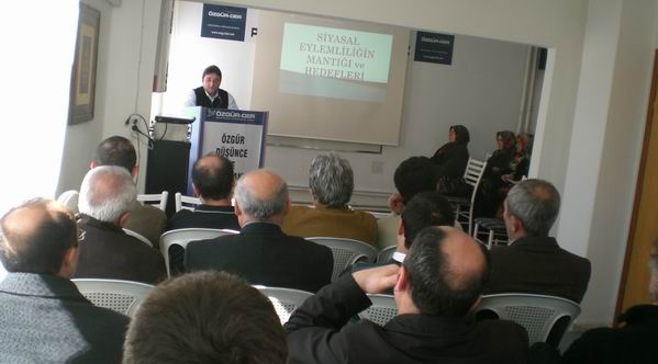 Özgür-Der Çorum Şubesi’nde devam eden Pazar seminerlerinde bu hafta Bülent Gökgöz, “Siyasal Eylemliliğin Mantığı ve Hedefleri” konulu bir seminer sundu.