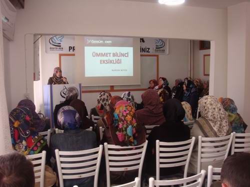 Özgür-Der Çorum Şubesi 2008-2009 dönemine ait alternatif eğitim seminerlerine devam ediyor. Bu haftaki semineri “ Ümmet Bilinci Eksikliği ” konu başlığı ile Nurcan Büyük sundu.