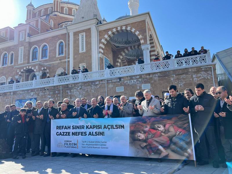 Gazze halkı hayvan yemlerini öğüterek ekmek yapmak durumunda kalırken Siyonist abluka sebebiyle kıtlık ve salgın hastalıklar yaygınlaşıyor. Çorum Filistin Platformu’nun çağrısıyla Cuma namazında Akşemseddin Camii’nde bir araya gelen Müslümanlar, namaz sonrasında basın açıklaması gerçekleştirdi.