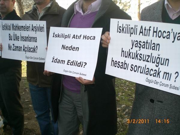 4 Şubat 1926 yılında İstiklal Mahkemesi tarafından şehit edilen Vefatının 85. Yılında İskilipli Atıf Hoca’yı Özgür-Der Çorum Şubesi üyeleri kabrini ziyaret ederek andı.