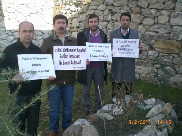 Zulmün karanlığının artık daha fazla sürmemesi gerektiğini düşünen ve İskilipli Atıf Hoca'nın taşıdığı kaygıları paylaşan bizler, bu vahim tarihi olayın arkaplanının bütün boyutlarıyla tartışılması, aydınlatılması ve sorumlularıyla tarih önünde hesaplaşılması gerektiğine inanıyoruz. Yetkililerce İstiklal Mahkemeleri zulmünün net biçimde kınanmasını ve mahkeme görünümlü bu hukuksuzluğun tüm kurban ve mağdurlarından özür dilenmesini bekliyoruz. İskilipli Atıf Hoca'yı idama götüren Batıcı-laik değerler ve kıyafet dayatmasının devrim yasaları adıyla tabulaştırılması saçmalığına son verilmesini ve İslami kimliğimize ve taleplerimize yönelik baskı ve yasaklamaların tümüyle sona erdirilmesini talep ediyoruz. Bu taleplerin yerine getirilmesini de toplumsal barış ve adaletin tesisi açısından elzem görüyoruz.