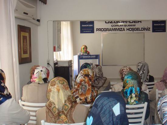 Özgür-Der Çorum şubesi bayanlara dönük seminerlerinin sonuncusunu “Mümin ve Müminelerin Birbirlerine Karşı Sorumlulukları” konu başlığı ile Müjgan İslam sundu.